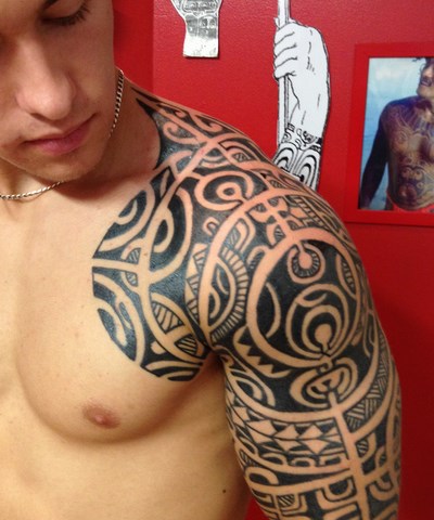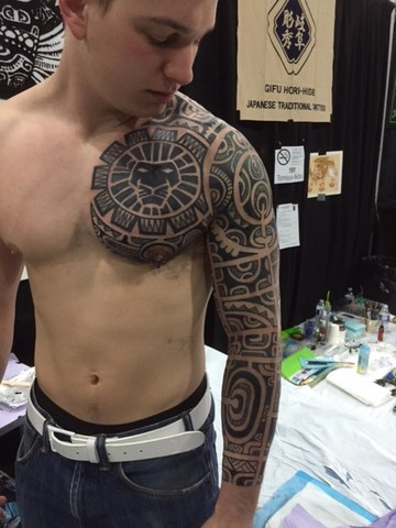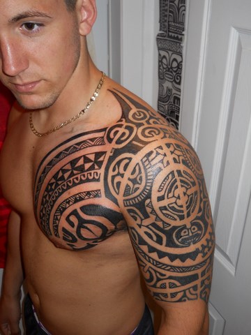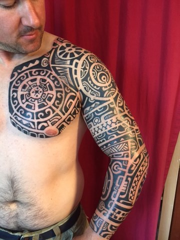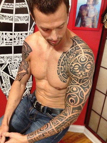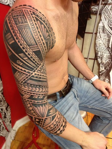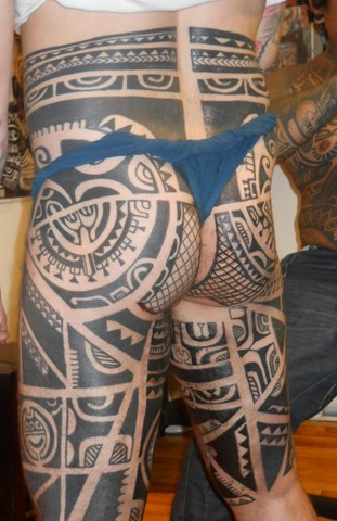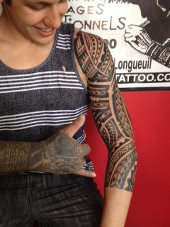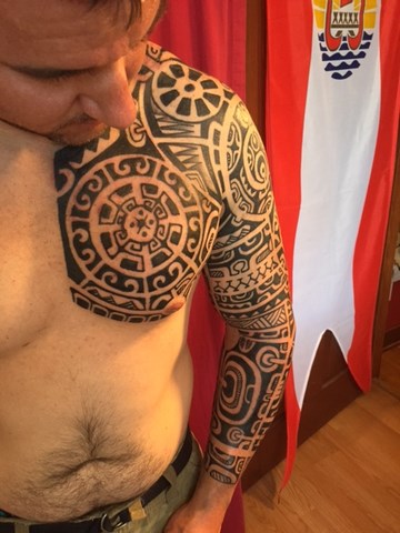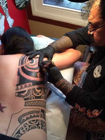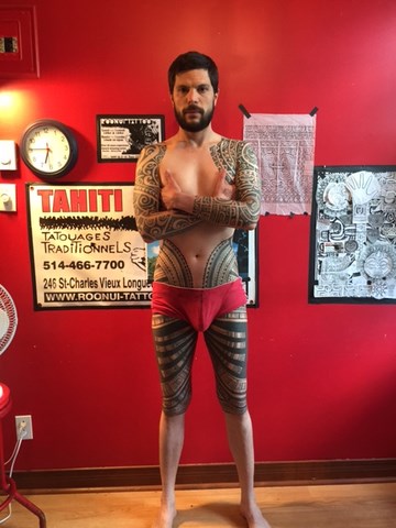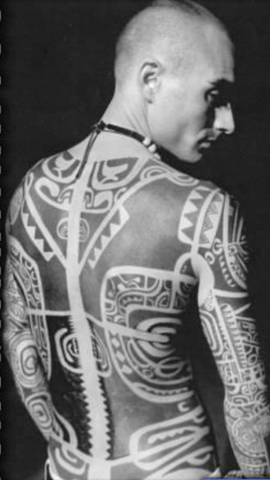 Roonui maître incontestable du tatouage polynésien , originaire des Tuamotu , grave sur les peaux